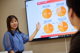 現在は、採用業務に加え、法人営業での経験を活かした「新卒教育」も担当しています。新卒社員がスムーズにお仕事を覚え、自分らしく働けていけるよう、法人営業の観点からのアドバイスや、商談同席など多岐にわたる業務フォローをしています。
